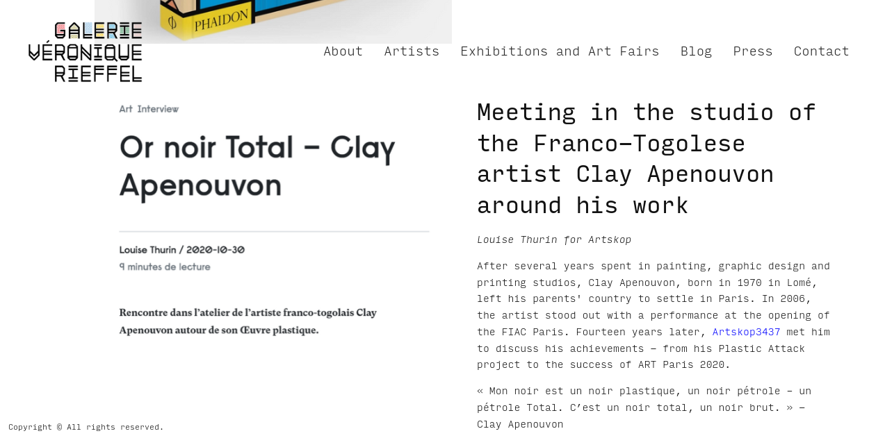 I was featured on Artnet, Numéro Magazine, The Art Newspaper France, Say Who, France Info, Art Africa Magazine, Beaux-Arts Magazine, Grazia France, FAD Magazine, Galleriesnow as well as other pages, journals and magazines. We also shot a walkthrough video of the exhibition for the gallery’s socials.