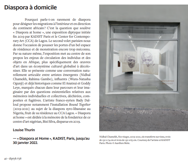 Featured in Contemporary And (C&) and Le Monde Afrique.